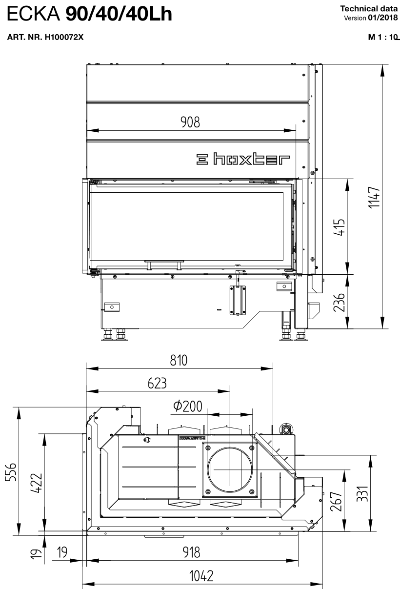 Каминная топка Hoxter ECKA 90/40/40h