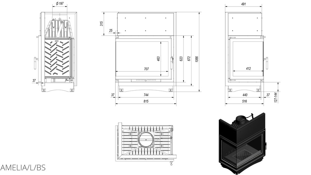 Каминная топка Kratki Amelia 25 L/BS