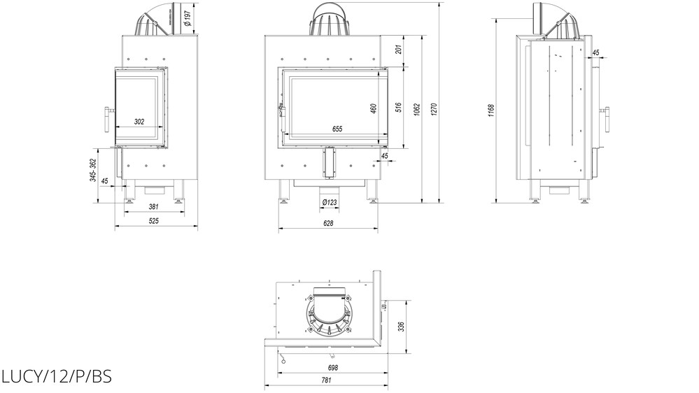 Каминная топка Kratki Lucy 12 R/BS