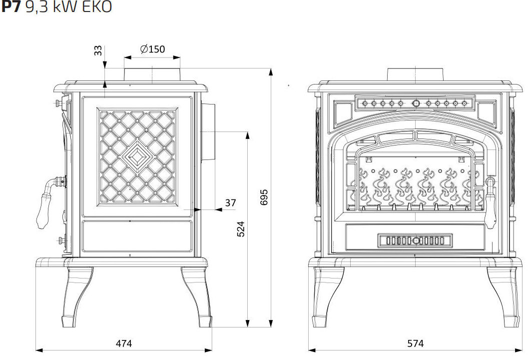 Печь-камин KawMet P7 9,3 kW Eko