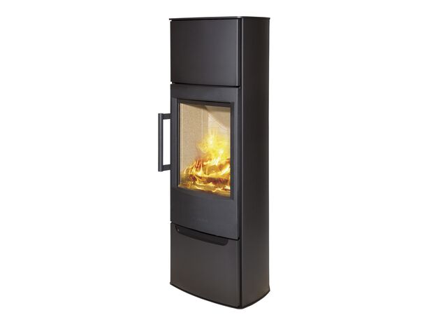 Качественная скандинавская печь с большим стеклом и умеренной мощностью.